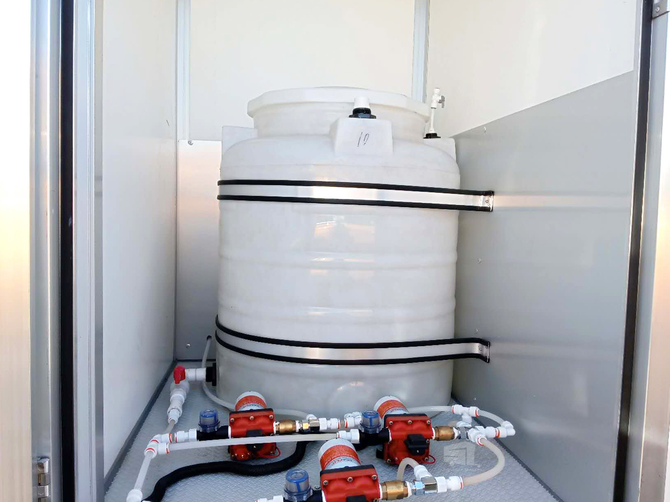 - with 300L fresh water tank, 420L black water tank and 2 x 60L grey water tank